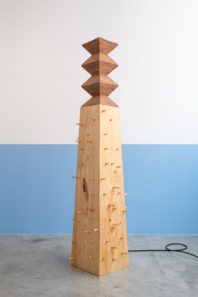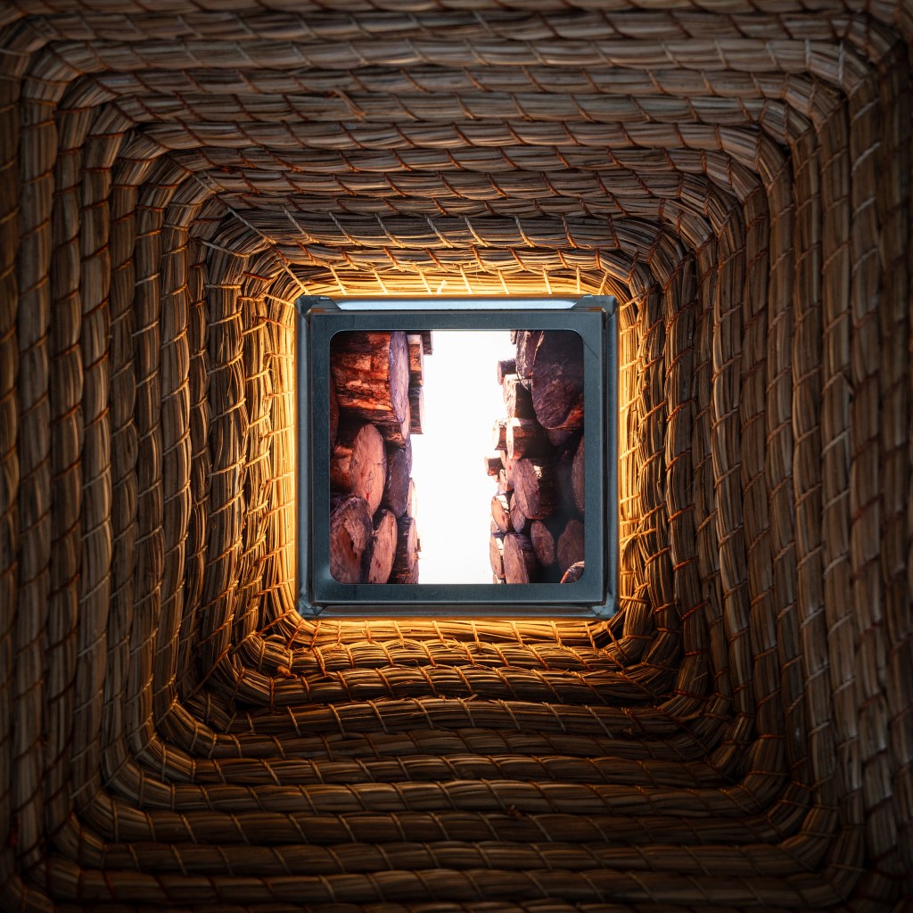 El título de la exposición toma impulso de la novela The Word for World Is Forest de Ursula K. Le Guin, publicada en 1972, en un contexto marcado por la guerra de Vietnam, los movimientos antibélicos y el surgimiento de una conciencia ecológica contemporánea. Le Guin articula una crítica temprana al extractivismo y a las lógicas coloniales. En la novela, la devastación del bosque ocurre junto con la imposición de un lenguaje y prácticas que transforman a los árboles en recursos y sus comunidades en cuerpos administrables y desechables. Esta dimensión ecológica y decolonial resuena de manera directa con el tiempo presente, nos permite cuestionar y repensar el bosque como una red de relaciones históricas y materiales atravesadas por formas de uso, apropiación y resistencia, donde cada objeto conserva la huella de esas tensiones.