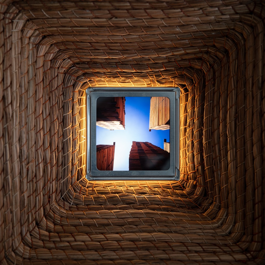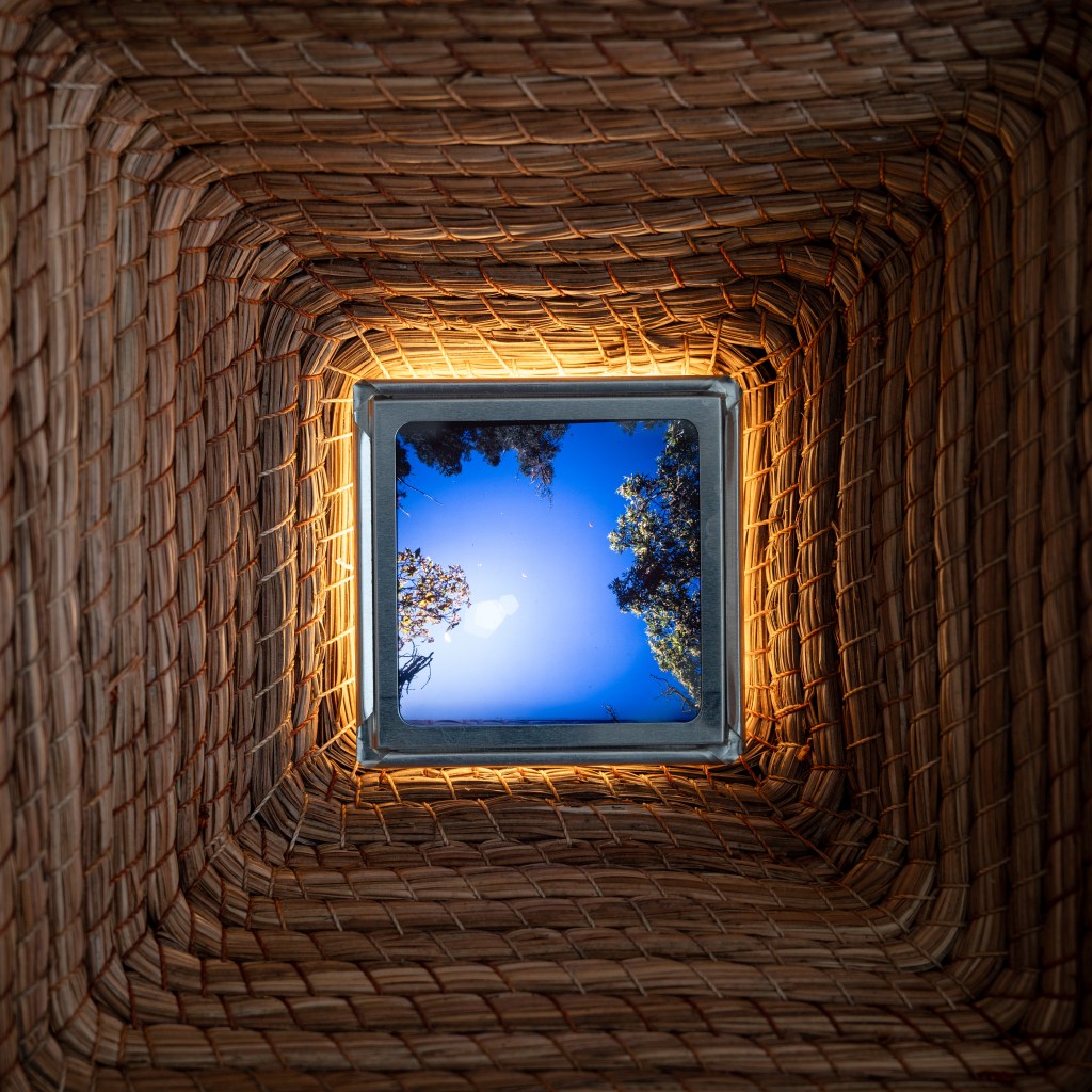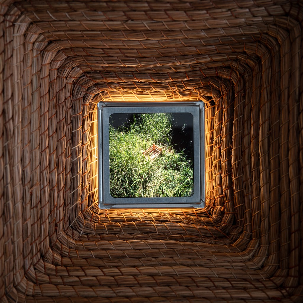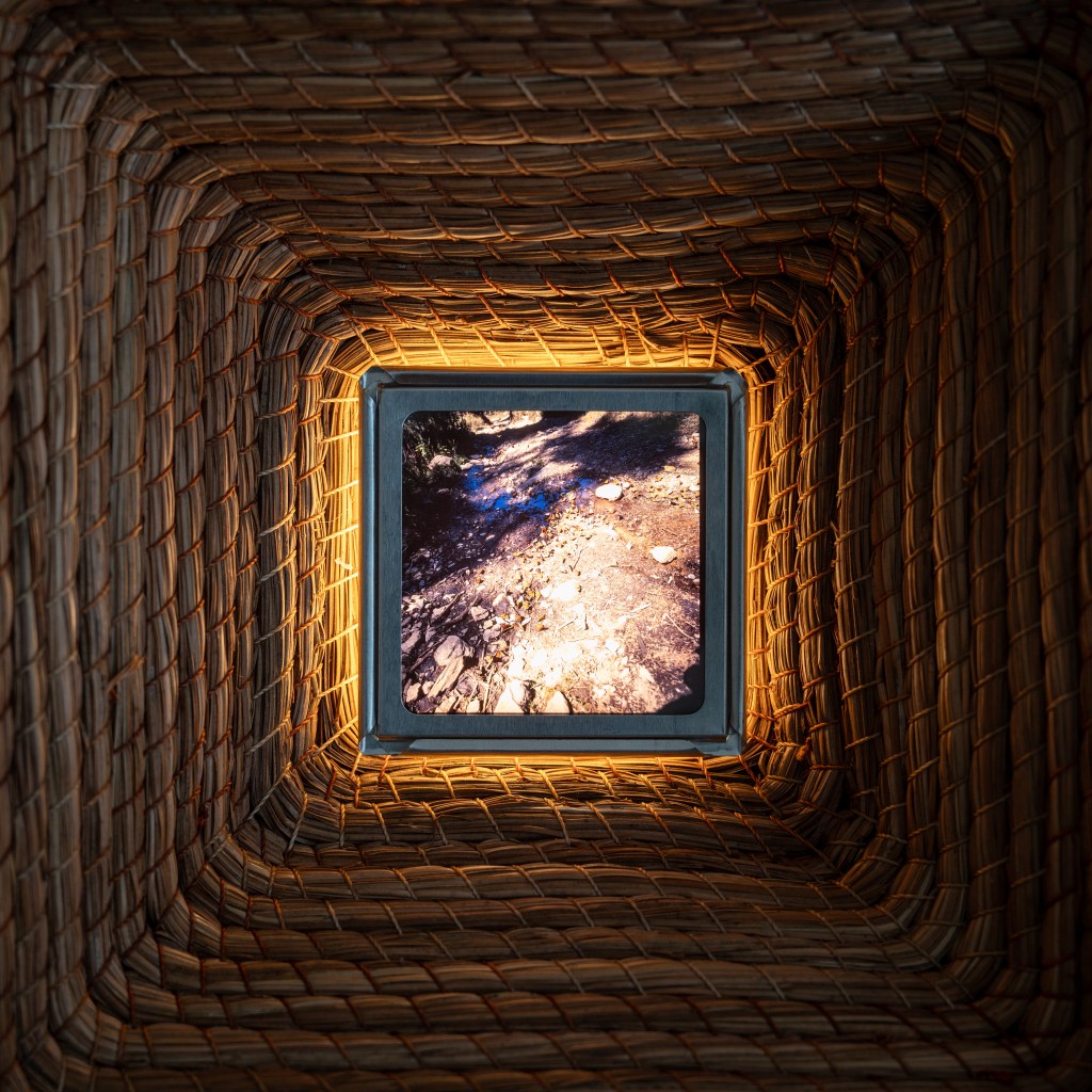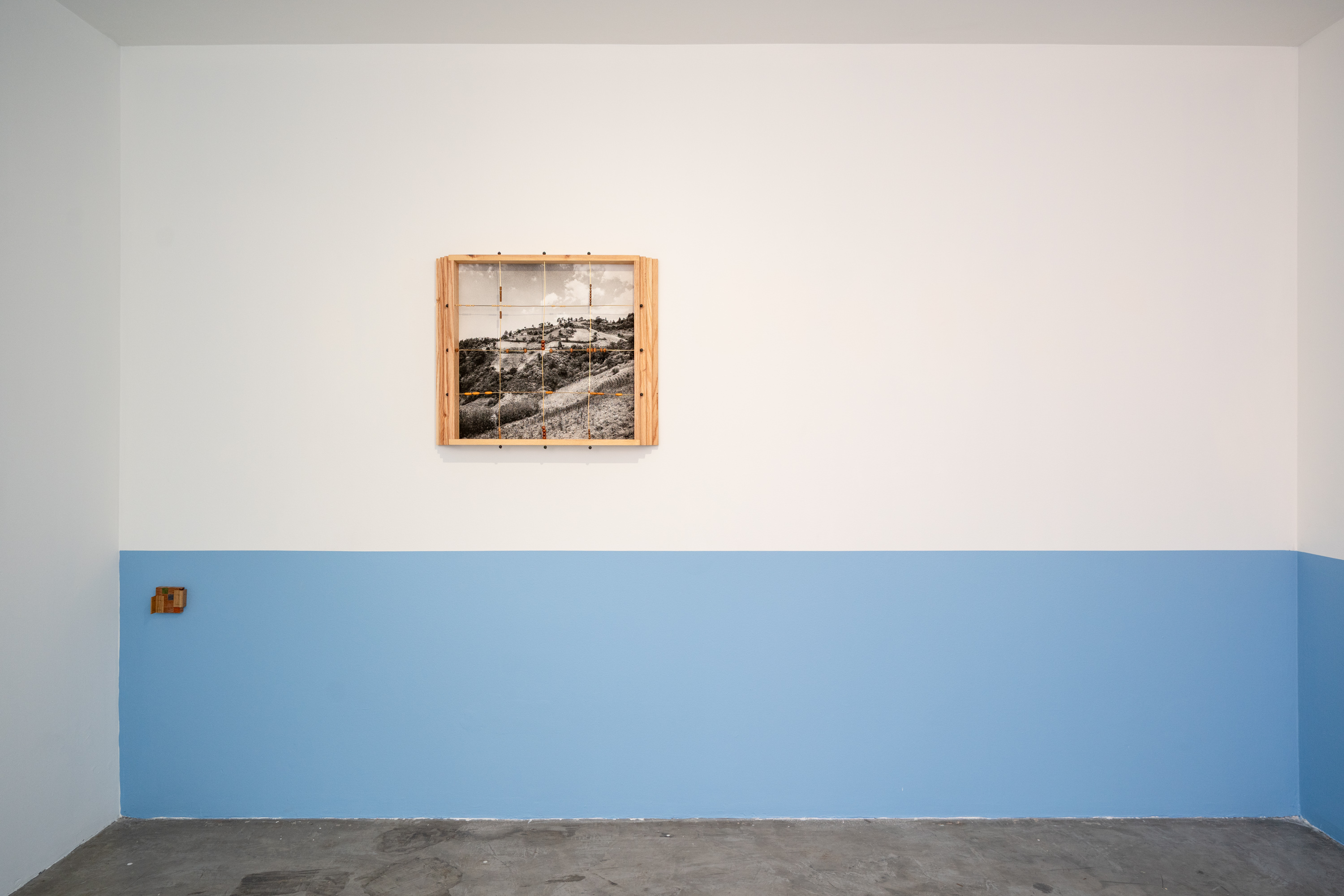 Toda representación del territorio carga una historia de miradas anteriores: los paisajes que otros viajeros tradujeron en crónica, dibujo o fotografía siempre se interpretan desde un enfoque particular. José Luis Arroyo-Robles es consciente de esa herencia y su trabajo documental es también una lectura personal, una forma de medir la distancia, ni tan cerca que todo se sature, ni tan lejos que nada pueda verse. En las piezas a muro, de la serie Mirillas, esa mediación se vuelve literal y la retícula de latón y madera que organiza las imágenes proviene de un gesto corporal, la superposición de dos manos que construyen ejes. La mirada del espectador llega al bosque atravesada por esa estructura, recordándonos que el encuadre nunca es neutro: alguien decidió dónde estaban los bordes. Caminar el bosque, trabajar la madera, disparar el obturador: en estos tres actos el artista encuentra una forma de atención que la imagen digital raramente permite, una presencia sostenida donde el cuerpo no puede estar en otro lugar.